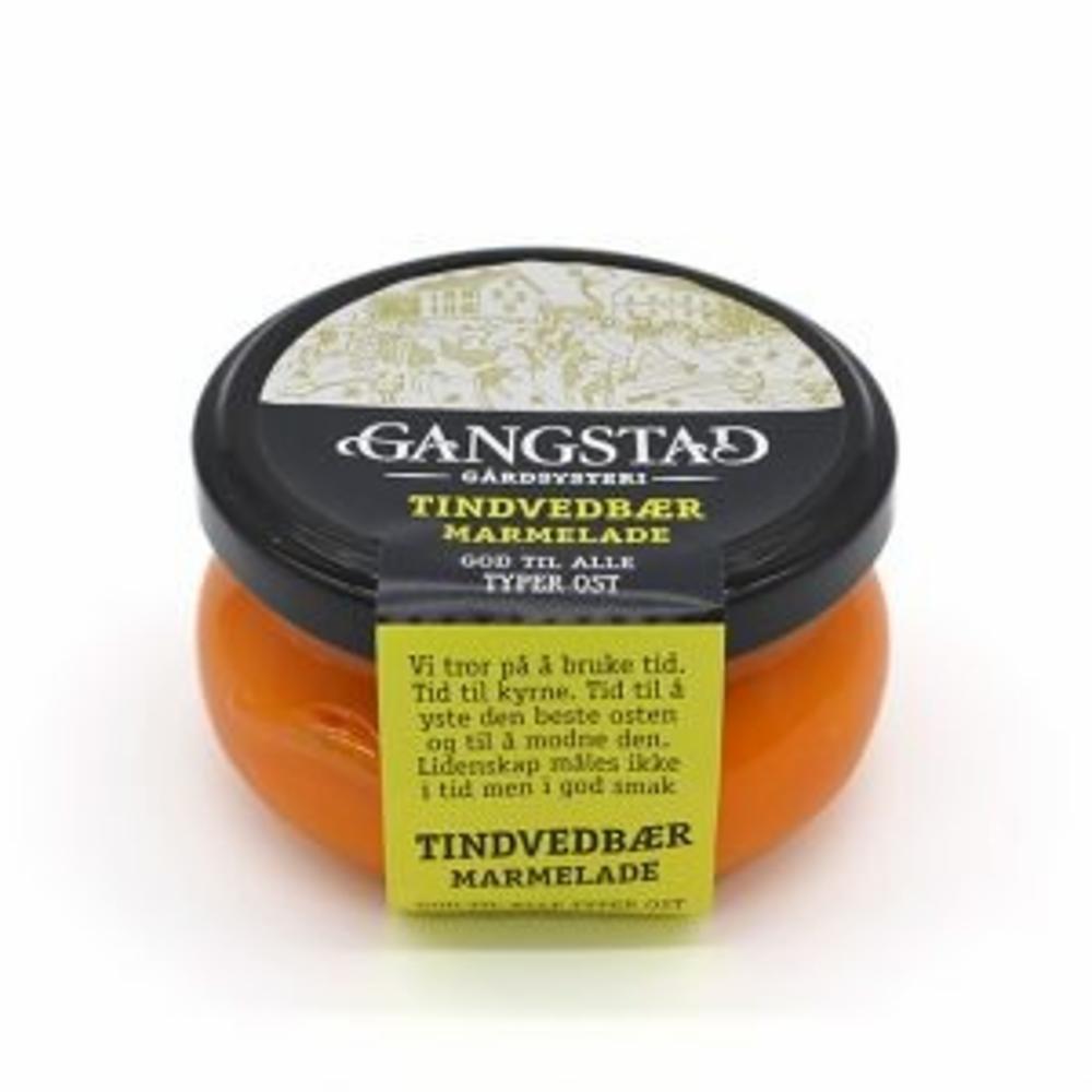Tindvedbærmarmelade passer godt til Edel Hvit og Camembert. Tindvedbær er en «vitaminskatt» med mange viktige vitaminer. Ingredienser: Tindvedbær, gulrot, sukker, vann, pektin, kaliumsorbat.