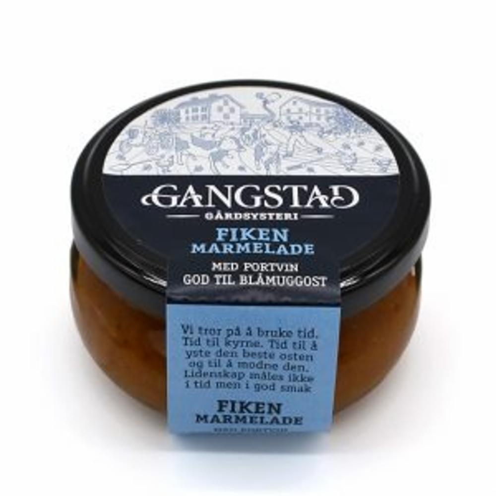 Marmelade av fiken og portvin. God til blåmuggost. Ingredienser: Fiken, aprikos, vann, sukker, portvin, kaliumsorbat.