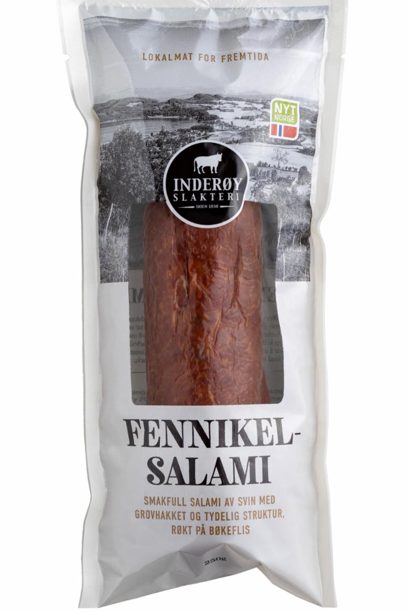 Fennikelsalami er en nyutviklet salami med svinekjøtt og en grovhakket og tydelig struktur, som er røkt på bøkeflis. Passer perfekt på et tapasbord.